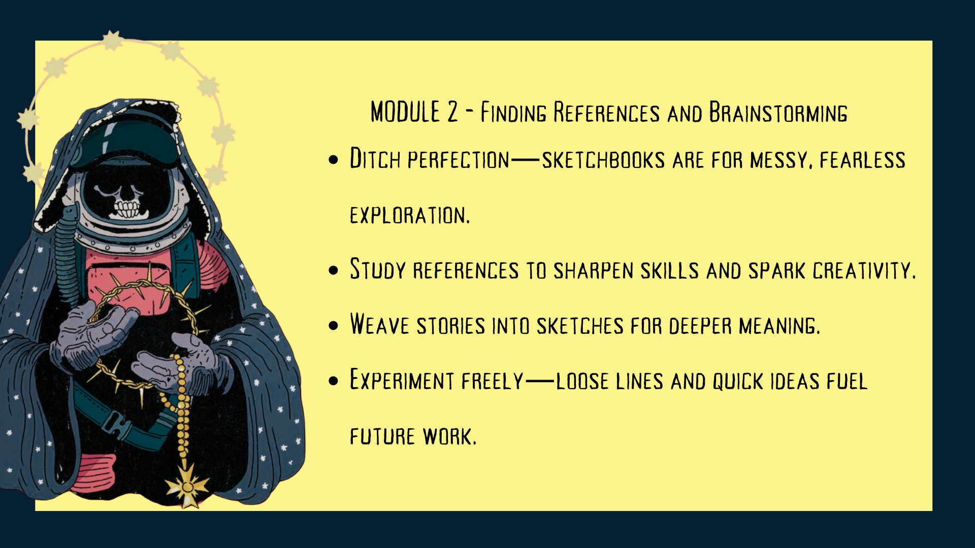 Follow structured modules that guide you through brainstorming, sketching thumbnails, refining your designs, and creating stunning final compositions. Share your progress, ask questions, and grow your skills through hands-on activities!