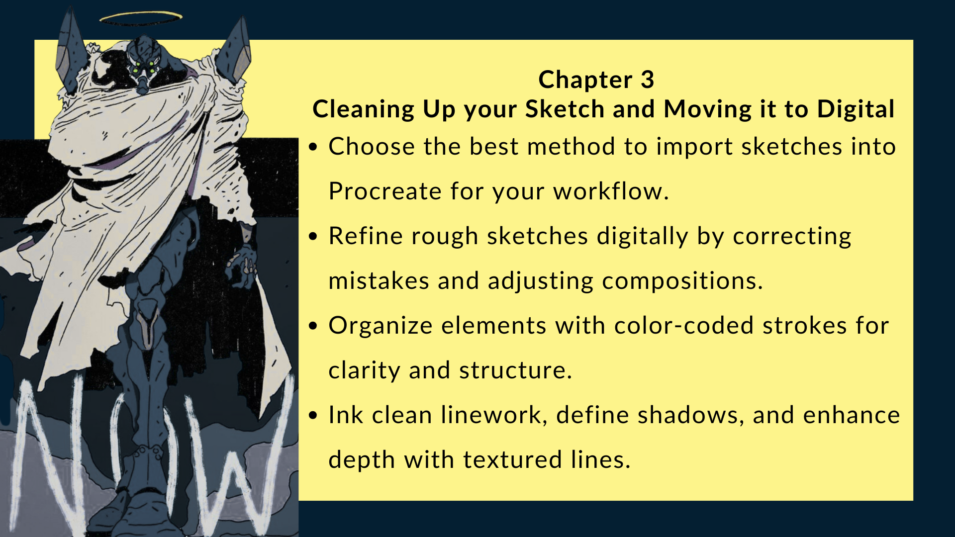 This course is designed to help you take your ideas from rough sketches in a notebook to polished, professional-looking character posters. Youâll learn the tools and techniques of Procreate while exploring the creative process, from brainstorming and thumbnails to inking, coloring, and adding finishing touches.