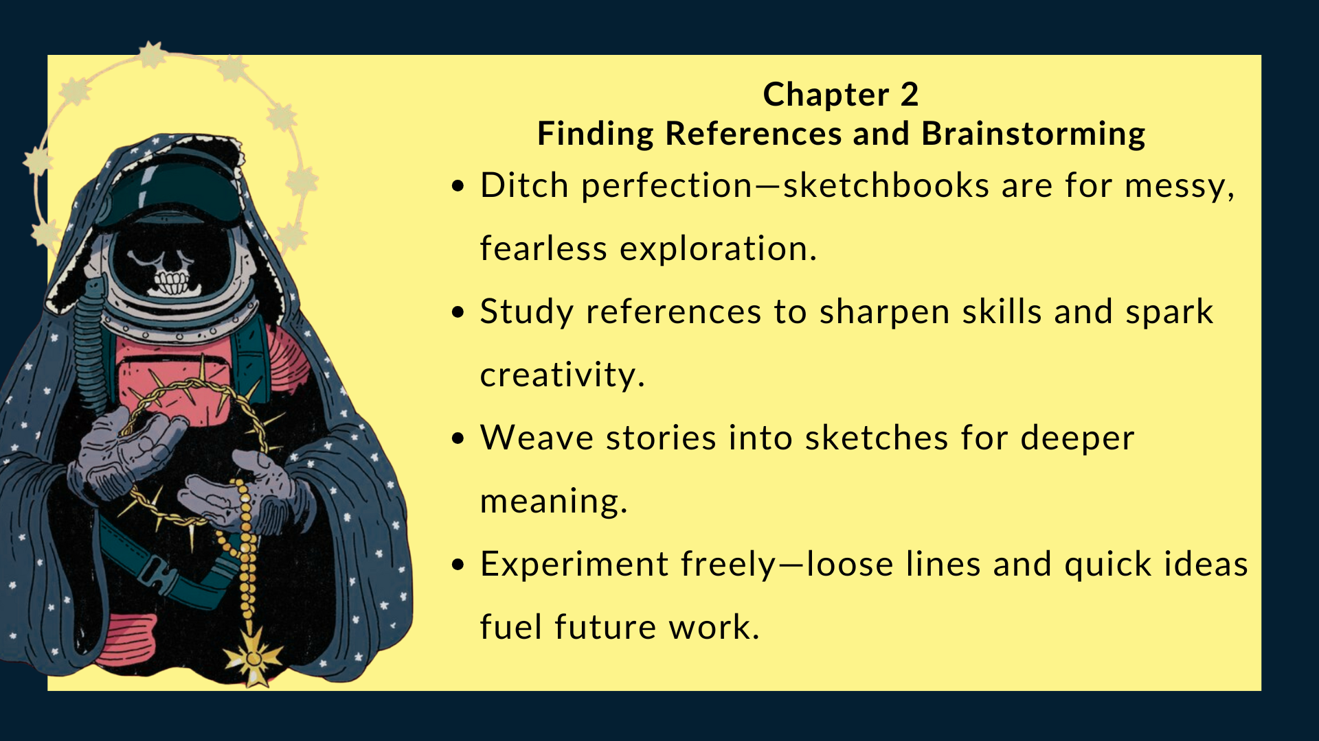 This bonus chapter includes three dedicated videos: the first explores leveraging pop culture in your art, the second discusses navigating audience unpredictability, and the third breaks down essential dos and donâts for sharing work on social media.